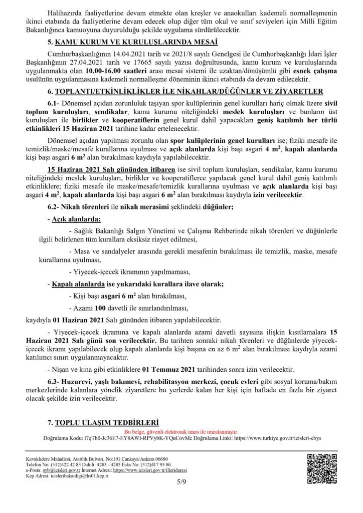 HAZİRAN AYI NORMALLEŞME TEDBİRLERİ