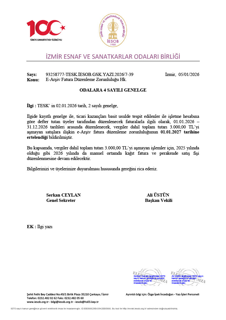 zorunluluğunun 01.01.2027 tarihine ertelendiği bildirilmiştir.